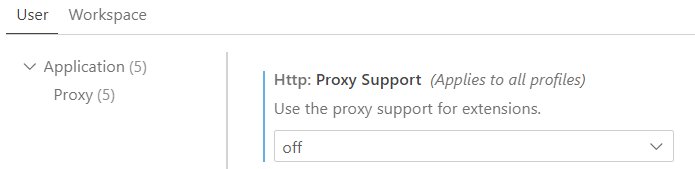 - Settings- Http: Proxy Support 검색 후 off로 변경