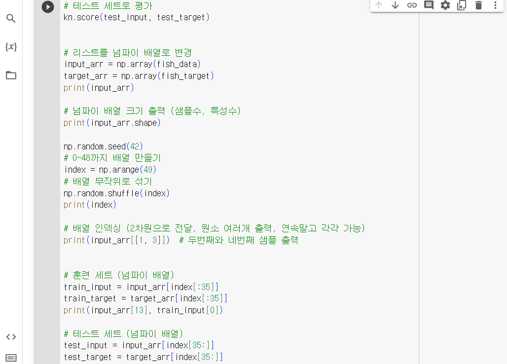 - 사이킷런으로 훈련 세트와 테스트 세트 나누기
