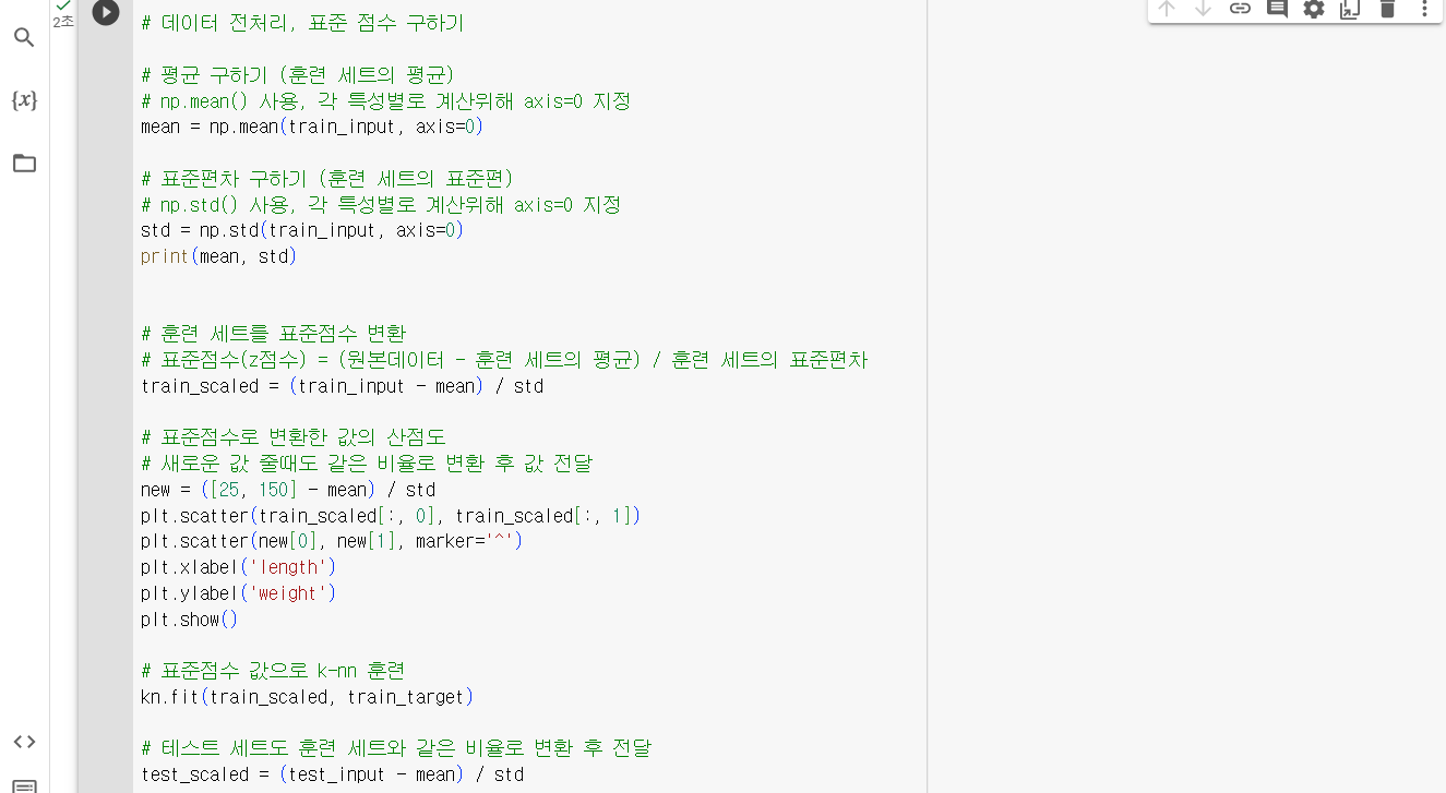 테스트 세트도 훈련 세트의 평균과 표준편차로 변환해야 한다.